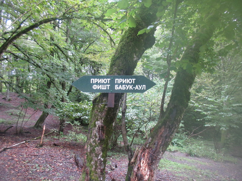 Попрощавшись, завершили спуск со склона. Наткнулись на стоянку, где был указатель, пошли в сторону Бабук-Аула.