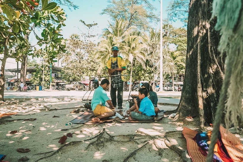 Прилетели мы в аэропорт Пхукет из Бангкока, уже изрядно исколесившие тайскую столицу и деревушки, пообщавшись с местным населением и даже с туристами из Камбоджи и Германии, а также насмотревшись шокирующих вещей на Пангане, поспав на живом тигре, преодолев дороги в ливень, приставания англичанина среди ночи, собак на безлюдном пляже, ох, сколько всего было!
