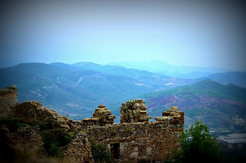 Просуществовала Сиедра вплоть до 12 века, пока сюда не пришли сельджуки. После начала их господства, город забросили и он постепенно, камень за камнем начал разрушаться. Но многие здания все равно сохранились в достаточно хорошем виде, например Базилика, внутри которой можно обнаружить небольшую напольную мозаику в узком коридорчике. Всем, кто сюда поедет, советую подняться до самого верха развалин. Там уже нет облагороженной дороги, но есть протоптанная тропинка. Оттуда открывается вид на 360 градусов и захватывает как Аланью, так и горы с деревушками, бананами и море.