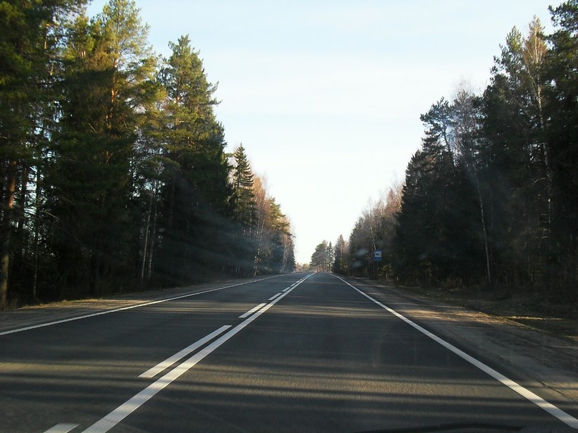 До Ярославля ехать примерно 200 километров, по времени это у меня заняло 2 час 45 минут. Дорога свободная, транспорта мало. Здесь по одной полосе в каждую из сторон. По обе стороны от дороги находится лес.
