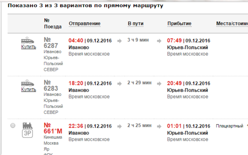 На скрине, который я прикрепила ниже, вы можете увидеть, что на сегодня есть три поезда до Юрьев-Польского в: