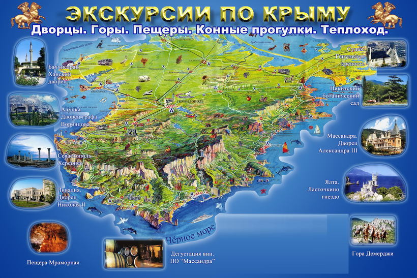 Если вы гостите на каком-то крымском курорте, то вам могут быть доступны разнообразные экскурсионные программы как в вашем городке или поселке, так и в близлежащих курортах. Почти на каждом углу стоят стеллажи, которые предлагают автобусные, конные или даже пешие прогулки и экскурсии, включающие в себя посещения музеев, осмотр достопримечательностей под открытым небом, разнообразный досуг – дельфинарии, катание на яхте, рыбная ловля.