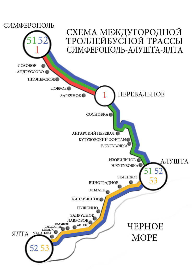 Троллейбусы – это в Крыму транспорт и городской, и междугородного сообщения. И очень видно, как их любят сами жители полуострова и туристы, что приехали на отдых – наверное, у всех найдется серия фотографий с троллейбусом, из троллейбуса и в троллейбусе.