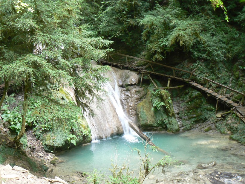 Это, наверное, самый популярное место для экскурсии в Сочи: в красивом ущелье лежат каскады небольших водопадиков, порогов, перекатов, плюс самшитовые заросли, придающие месту особое очарование. Находятся они в Лазаревском районе, у Головинки.
