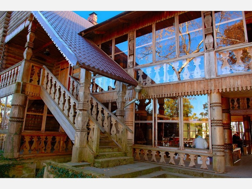 Это в Дагомысе, Лазаревский район, тут самые северные в мире чайные плантации. Построили сказочные деревянные домики, с хохломой и городецкой росписью, где просто приятно посидеть и попить вкусный чай, с необычным вареньем, орехами. Не то чтобы специально сюда стоит ехать, но если где-то недалеко отдыхаете или проездом – очень душевная передышка. Тут же всё можно купить: чай, мёд, варенье.