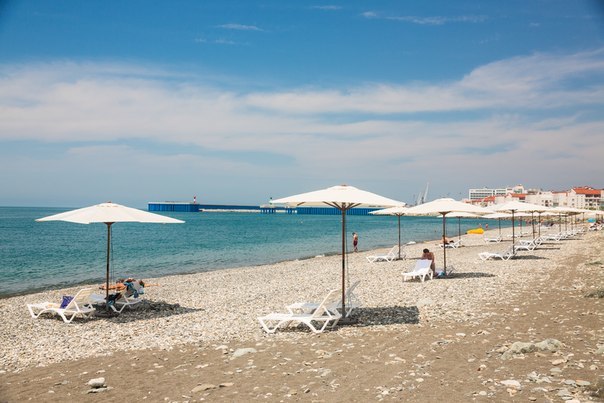 Пляж галечный, очень длинный, 6 км, отличный берег, вход в воду, море очень чистое. Просто прекрасный пляж, один из лучших в Сочи.