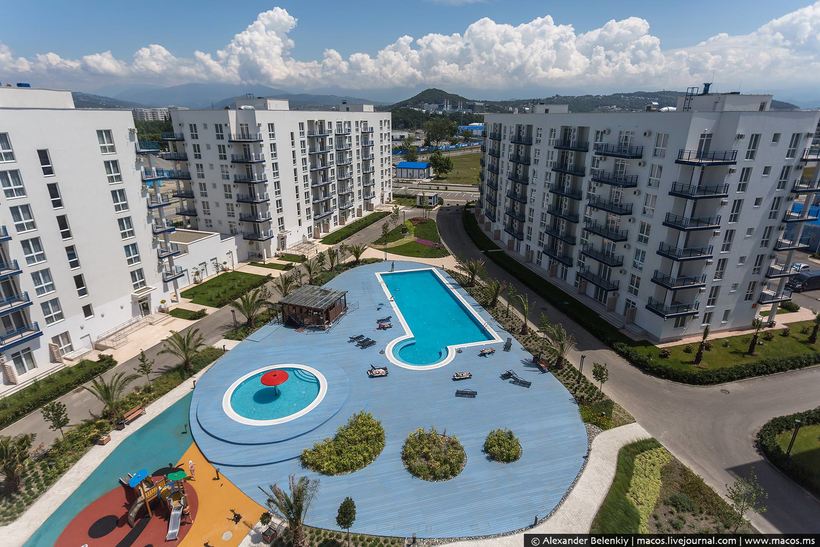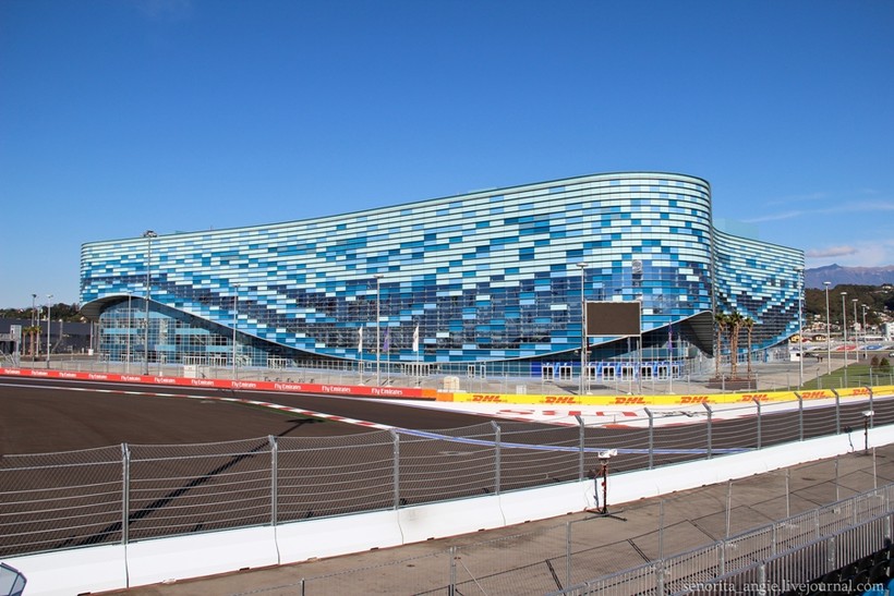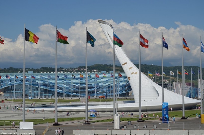 Пейзаж вокруг роскошный: море и горы, а посередине архитектурные шедевры олимпийских объектов: