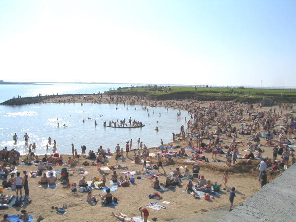 В Рейкьявике и пригородах находится большое количество бассейнов с термальной водой, открытых и под крышей. Многие из них кроме плавательных дорожек имеют детские бассейны, сауны, горячие ванны, водные аттракционы. Удивительно, но есть в Рейкьявике и морской пляж Nautholsvik! Исландский климат не располагает к морским купаниям, но на берегу моря в южной части города была устроена искусственная лагуна и намыт пляж с помощью завезённого песка, а морская вода смешивается с водой из геотермального источника и достигает вполне приемлемой для купания температуры 19 градусов (в удачные дни). Летом вход бесплатный, зимой билет стоит 500 крон/3,4 евро.