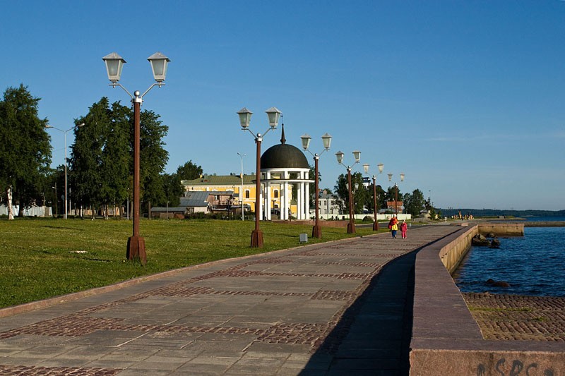 Вымощенная карельским гранитом набережная – прекрасное место для пеших и велосипедных прогулок, романтических свиданий, катания на роликах. Это «островок» культуры с многочисленными памятниками и необычными скульптурами. «Рыбаки», «Спящая красавица», «Место встречи» – подарки от городов-побратимов, которые украшают набережную и красуются в объективах фотоаппаратов любопытных туристов.