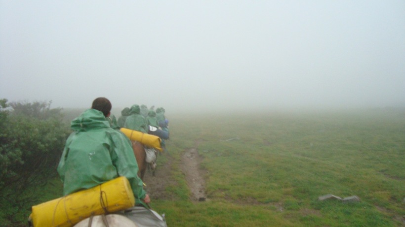 Вообще-то, второй вариант не желателен, т.к. занимает руки. Но если вы не собираетесь ходить в горы, то зонт тоже подойдёт. Лучше иметь запасной в рюкзаке, т.к. китайский целлофан легко рвётся. В Горном Алтае дождь начинается внезапно, из любого малюсенького облачка может хлынуть сильнейший ливень и зарядить на пару дней.