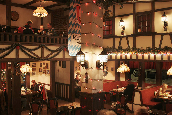 Основная тема: хорошее разливное пиво и немецкие закуски (колбаски, рулька, капуста). Интерьер, одежда официантов – всё очень и очень аутентичное, сразу баварская атмосфера чувствуется. Цены средние, ужин выходил обычно около 1500 руб. на человека.