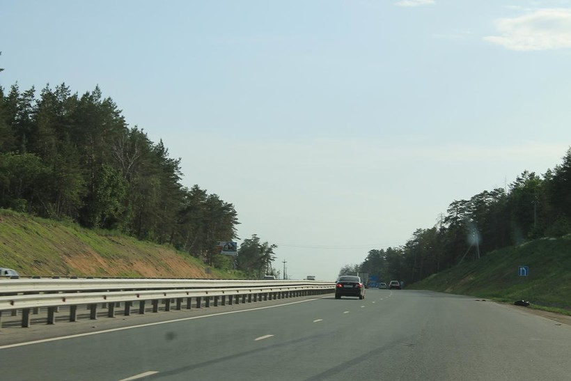 Проехав Тольятти, я выехал на трассу М-5. Здесь качество дороги тоже хорошее. Трафик большой, много фур, но трасса в отличном состоянии. Ехал не напрягаясь. Много заправок встречается на маршруте, кафе тоже много. Местами трасса петляет по серпантину. Вокруг очень красиво, но бдительность терять нельзя. На этом участке маршрута очень много камер установлено, так что лучше не нарушать.