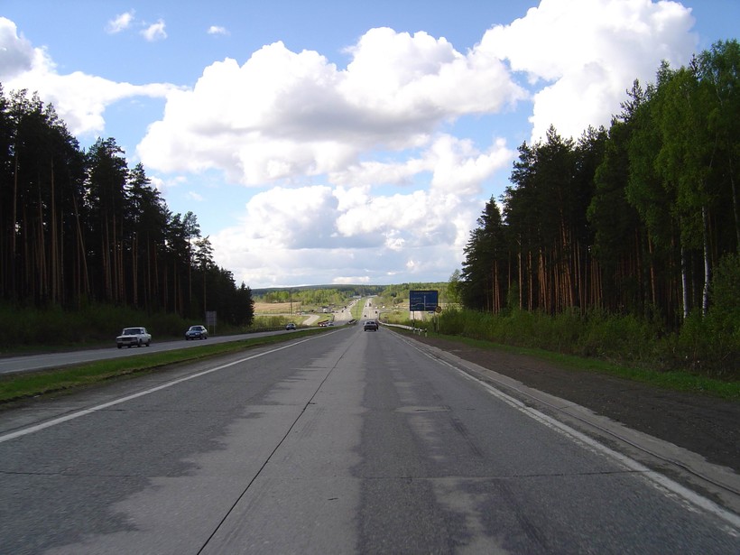 Выехав из Екатеринбурга, я попал на трассе М-36, по которой ехать не очень приятно. Дорога очень нуждается в капитальном ремонте. Видно, что дорожники хоть как-то пытаются поддержать ее в нормальном состоянии, но ямочный ремонт большого эффекта не дает. Есть и хорошие участки, но их не много. Трасса узкая, но иногда переходит в две раздельные полосы. Заправки и кафе встречаются на этом участке. Трафик здесь достаточно насыщенный.