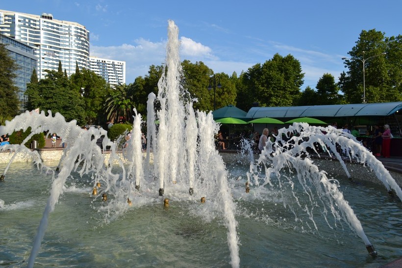 Светомузыкальное шоу фонтана начинается, конечно, вечером, но специально ради него оставаться в Сочи до темноты не рекомендую – ничего особенного не увидите, тем более, если уже видели поющие фонтаны в Олимпийском парке.