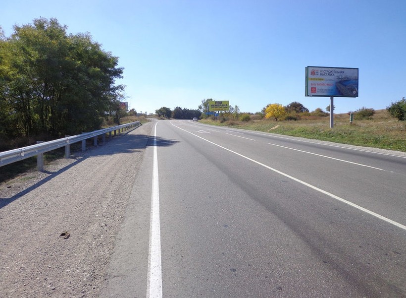 Если говорить коротко о дорогах в Крыму, то они в хорошем состоянии, но местами есть несколько плохих участков с ямами и неровностями. До Симферополя ехал по трассе Р-25, а дальше свернул на Р-23. Дорога в основном узкая, по одной полосе в каждую из сторон. Зато здесь трасса ровная, нет извилистых участков.