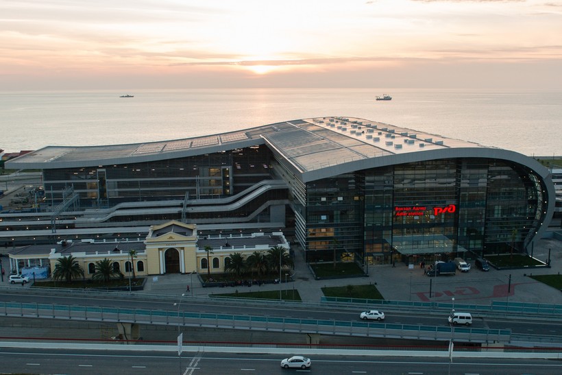 Электрички отходят от единственного и неповторимого вокзала Адлера (ул. Ленина, 113). Здание новое, красивое, выглядит вот так