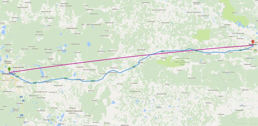 Екатеринбург - Тюмень - расстояние, время, стоимость бензина