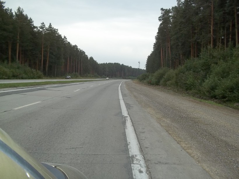 В Свердловской области дорога проходит по холмистой местности, много спусков и подъемов, есть повороты, так что разогнаться сильно не получится. К тому же, на пути встречается несколько населенных пунктов со светофорами. Само же покрытие неплохое, хотя моментами были трещины и ямы.