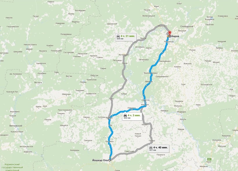 Йошкар-Ола - Киров, Кировская область - расстояние, время, стоимость бензина