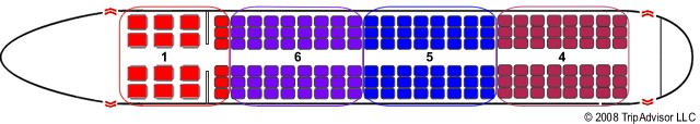 Зоны 4-9 заполняются пассажирами в соответствие с предписанными номерами, начиная с хвостовой части самолета и заканчивая передней частью.