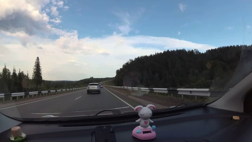 Транспорта немного, но время от времени приходится обгонять фуры. Ближе к Красноярску начинаются спуски и подъемы, но они не сильно крутые.