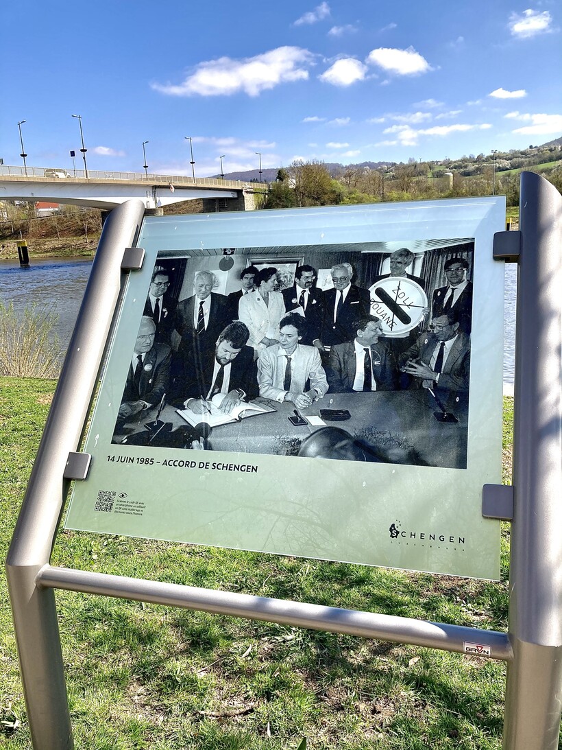 Именно здесь 14 июня 1985 года на борту прогулочного теплохода «Princesses Marie-Astrid“ у берега Шенгена, где сходятся в одной точке три государства из пяти, подписавших договор об упрощении паспортного контроля между ними.