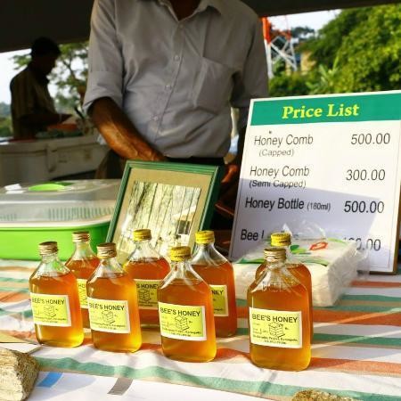 Мёд можно купить в супермаркете (Foodcity, Arpico и др.). Их достаточно много по городу. Ланкийцы с ним едят кёрд (йогурт из буйволиного молока), должен быть. Можно поискать и на стихийных рыночках, в лавках с фруктами вдоль Galle road, но качество негарантировано. Может быть и отличный мёд, и жженый сахар. Из уличных лучше покупать у торговцев кёрдом (см. Фото горшков в лавке). Попросите попробовать немного мёда у торговца.
