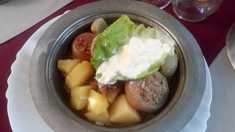 - В Боснии также приличное местное пиво. Вообще с едой в этой стране проблем нет. Местные жители очень гордятся своим кофе, а точнее его крепостью. Мне подали его в традиционной медной чашке с порцией рахат-лукума. Помимо самого кофе, я наслаждалась дружелюбным обслуживанием. Также я оценила кофе с пахлавой, это так вкусно. Один из местных жителей угостил меня Сахан, в котором есть соган долме (лук, мясной фарш и рис в томатном соусе) и джапрак (фарш и рис в томатном соусе, завернутые в листья капусты). Джапрк мне очень напомнил голубцы, за исключением специй. Кстати, у местных жителей есть собственный Монте-Карло под названием Неум.