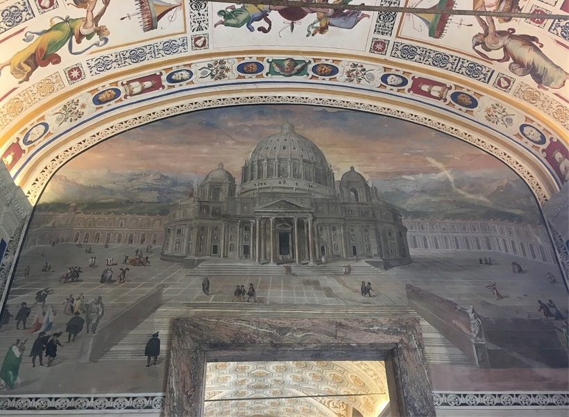 Обойдя огромную площадь Св.Петра полностью, я отправилась в дворцы Ватикана. Дворцы Ватикана образуют крупнейший музейный комплекс в мире, который хранит уникальные произведения искусств Караваджо, Рафаэля, Микеланджело.