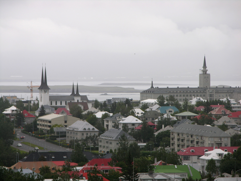 Я нашла неплохую смотровую площадку на крыше кафедрального собора. С него красиво смотрится малоэтажная застройка, разноцветные крыши местных «пряничных домиков». Есть и немного современных домов, примерно по 16 этажей высотой. Около собора я заметила памятник знаменитому викингу Лейфу Эрикссону, который за 500 лет до Колумба и Кабота плавал к берегам Америки. Жаль, что тогда не удалось установить постоянных контактов между Исландией и Ньюфаундлендом.