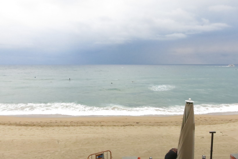 На обратном пути в Барселону погода испортилась. Набежали тучи, моросило. Но мы все равно купались, море было теплое и спокойное.
