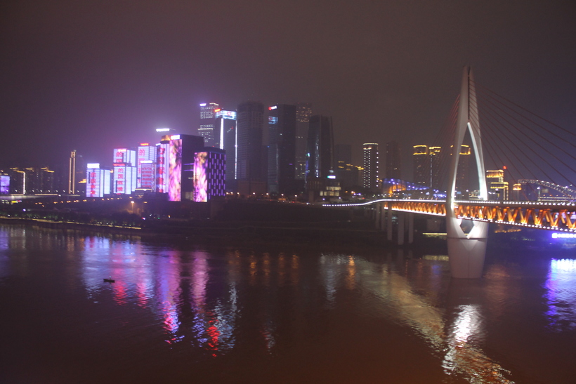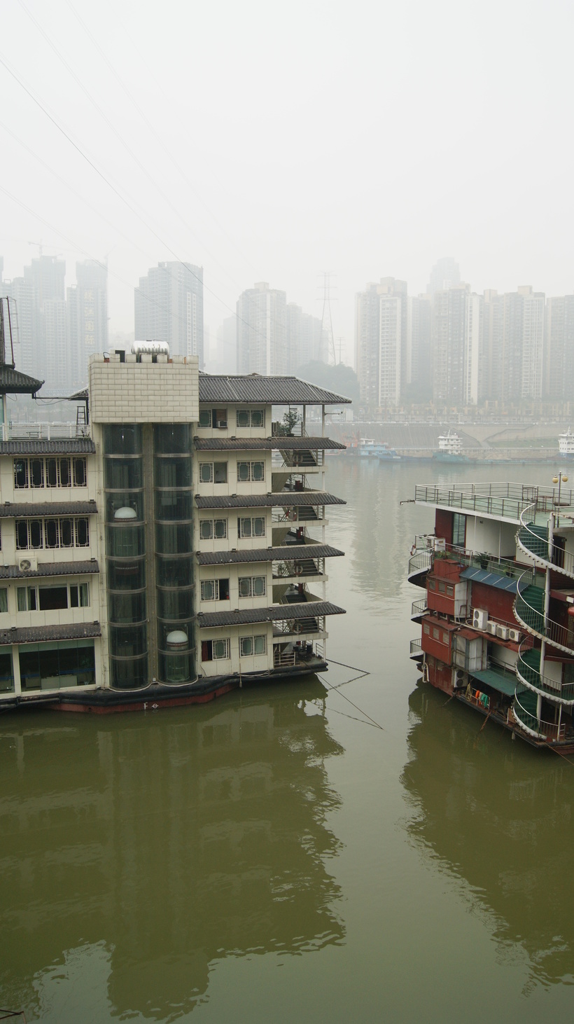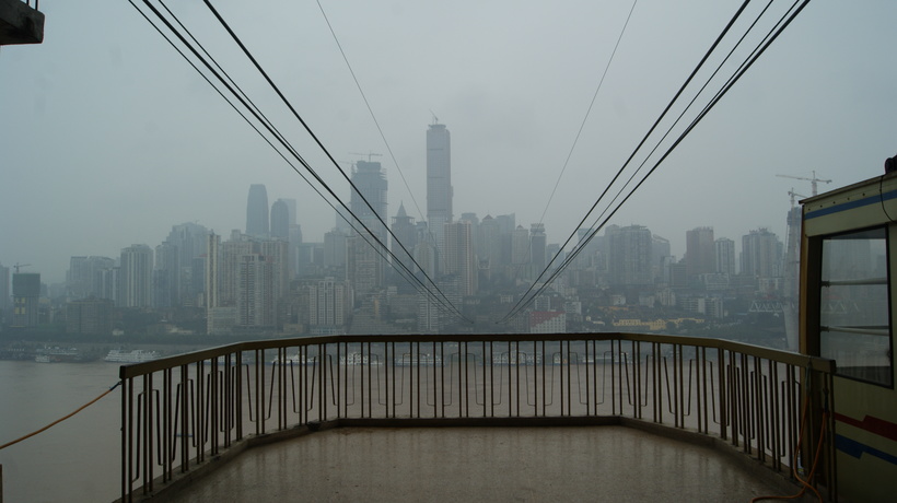 Первым городом по маршруту был Чунцин, гигантский город на юго-западе Китая, основанный в месте слияния рек Янцзы и Цзялинцзян, одна из рек очень мутная, другая - прозрачная (вроде Роны и Соны в Лионе) и они сливаются в городе в одну.