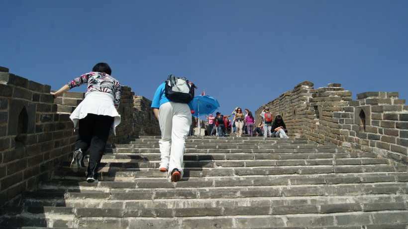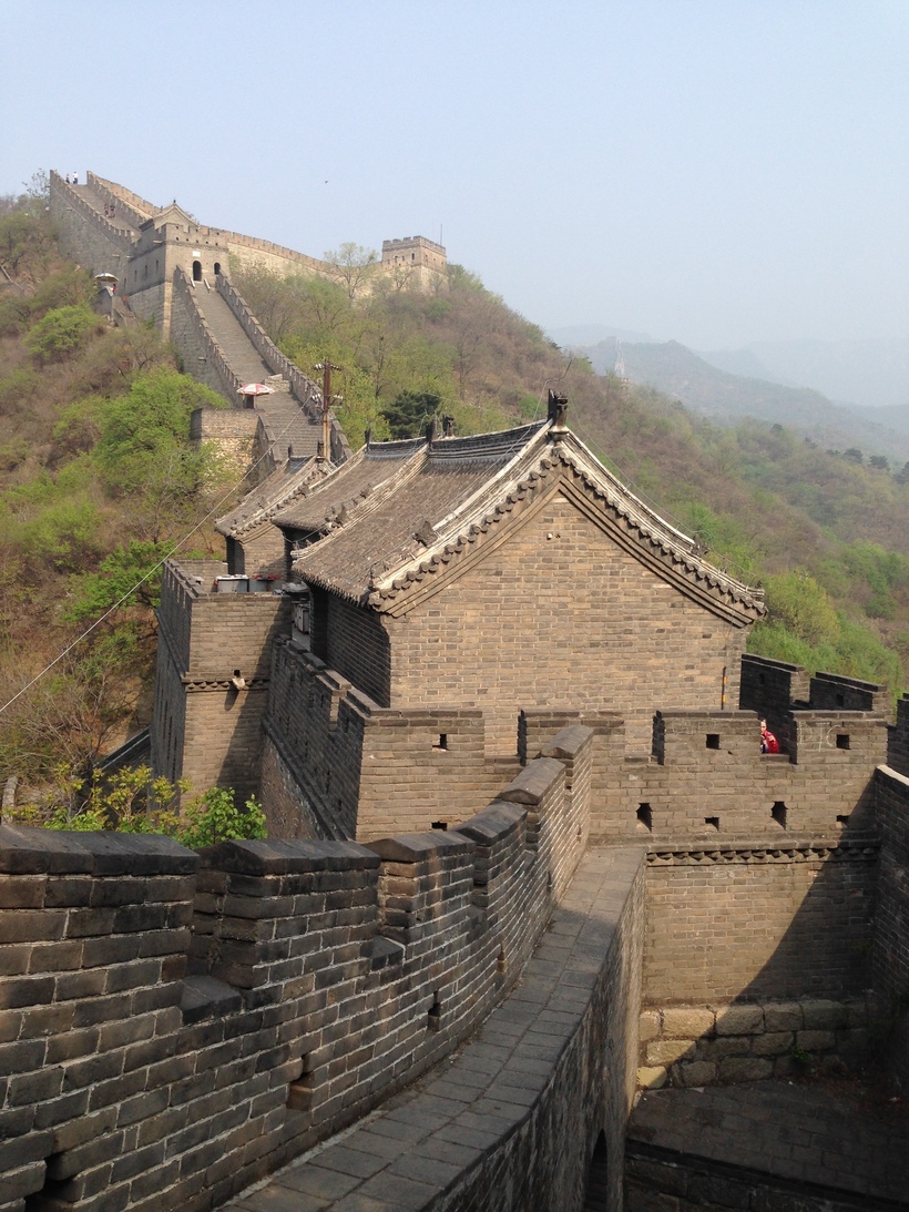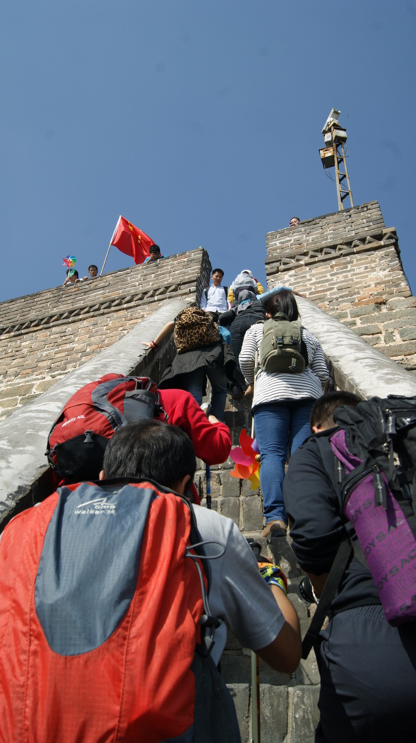 Мы прилетели в Пекин из Владивостока, до следующего рейса в Санья был целый день, не считая ночи после прилета, самое время погулять по такому интересному сооружению. На стену мы поднялись посредством канатной дороги,