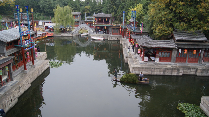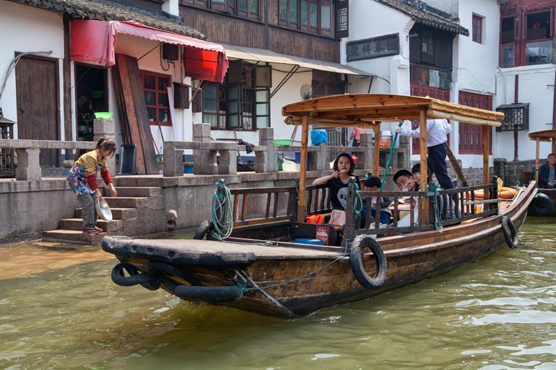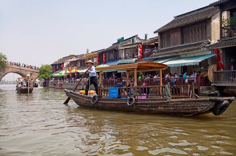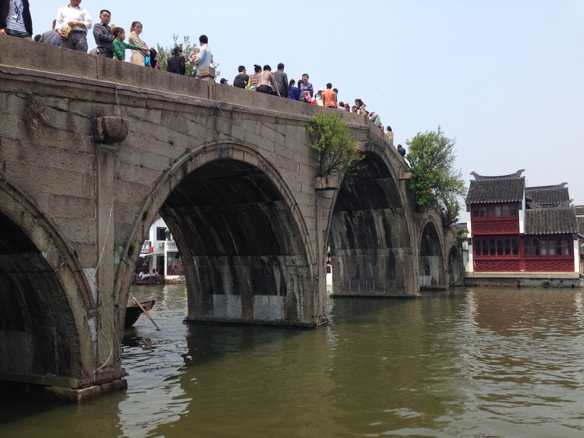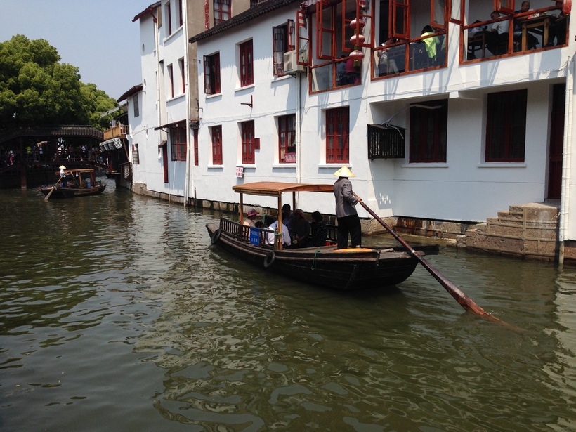 Чжоучжуан: Час езды от а/в и 20 минут пешком от а/в прямо (если встать к вокзалу левым боком). Вход 100ю. Простые торговые улицы вдоль речки, на которых за денежку катают туристов на лодке. Может, если бы не было столько народа, место показалось бы интересным (а-ля Венеция, только улица одна).