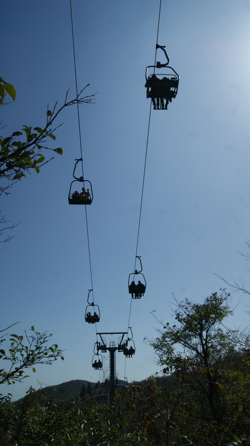 Гора Тяньмэнь. Подъемник прям в городе, что очень удобно. Вход 258 ю, но внутри берут плату на некоторые эскалаторы и фуникулёр до храма неба. Туман также не дал многое увидеть. Уже на горе были такие подъемники еще выше, мы плыли в тумане и пели гимн России )
