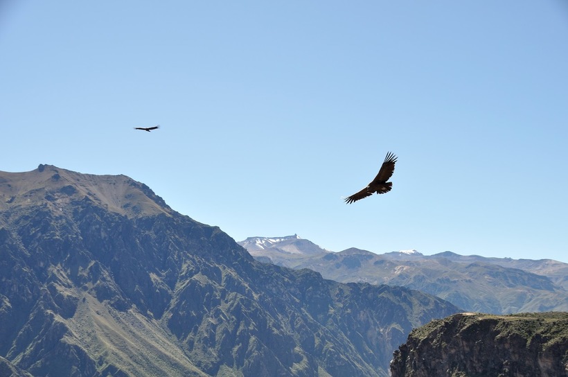 Следующий пункт программы - Каньон Колка - один из самыхьглубоких и высоких в мире. ВиражиВиражи, подъём до без малого 5000 метров, аутентичная ( это значит - облезлая, но с площадью оружия и церковью ) деревушка. Каньон красив, пейзаж отличный, от высоты подкруживается голова ( я даже зарядку не могу делать все эти дни на высоте ) , местный локал - унылое, бедное , скучное нечто. С утра пытаемся поймать в объектив бинокля полёт кондоров ( большая птица с лысой бошкой ). На обещанный пролёт собралась кучка разных ( европейцы, китайцы ) людей, пара кондоров промелькнула где- то там, быстро свалив из поля зрения. Ну, и мы поедем уже. На выезде из Каньона местные товарищи пытаются взять денег . Говорим, что деньги надо бы взимать на входе ( вчера ), а не на выходе . Да и за отель уплочено. Местные разводят языком, ибо говорят на трёх английских словах, на чём и ломаются.