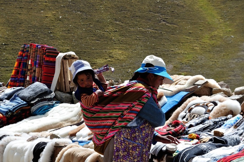 Несмотря на богатое культурное наследие древних цивилизаций, современное население Перу живет очень скромно. При этом грязи, мусора и неухоженных домов мы почти не встречали: чистота и порядок перуанцам по душе. Как и мы, перуанцы редко улыбаются без повода и закрыты в проявлении эмоций. Все мужчины и женщины невысокого роста: крепкие и коренастые. Женщины носят длинные черные волосы, заплетенные в одну или две косы. Многие ходят в традиционных ярких одеждах, а детей носят исключительно на перевязи за спиной. Меня удивило, что маленькие дети там ведут себя совсем как взрослые. Глаза у них суровые и серьезные без тени озорства и любопытства. За время поездки не увидела, чтобы чей-то малыш капризничал или плакал.