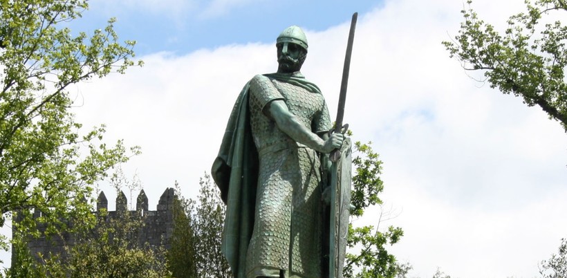 От столицы я двинулась на север страны. Меня интересовал небольшой городок Гимарайнш. Он весьма колоритный и старомодный, содержит суровую крепость X века и памятник первому королю страны — Афонсу Энрикешу. Я про его существование узнала накануне поездки. Этот современник Юрия Долгорукого для Португалии важен не меньше, чем Иван III для России. Изгнал арабов и создал герб страны, который за неполные 900 лет не изменился.
