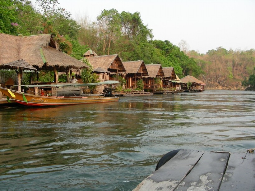 И первым из них будет путешествие по реке Квай. Экскурсия туда длилась 2 дня. Ночевали мы в уютных домиках, которые расположились вряд прямо на речке. Сама экскурсия - это сплав на плоту. На тех, кто хочет, надевают спасательные жилеты и сплав происходит своим ходом:) Это чувство не передать словами! Река, а справа и слева - джунгли. И ты плывешь с толпой таких же туристов и наслаждаешься видами.