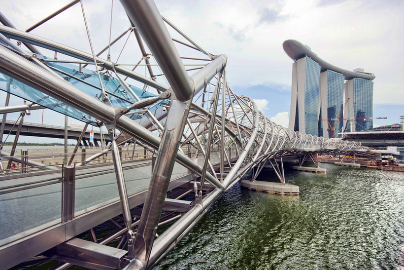 Мост Хеликс. Мост построен в виде ДНК, советую прогуляться по нему вечером, потому что включается подсветка.