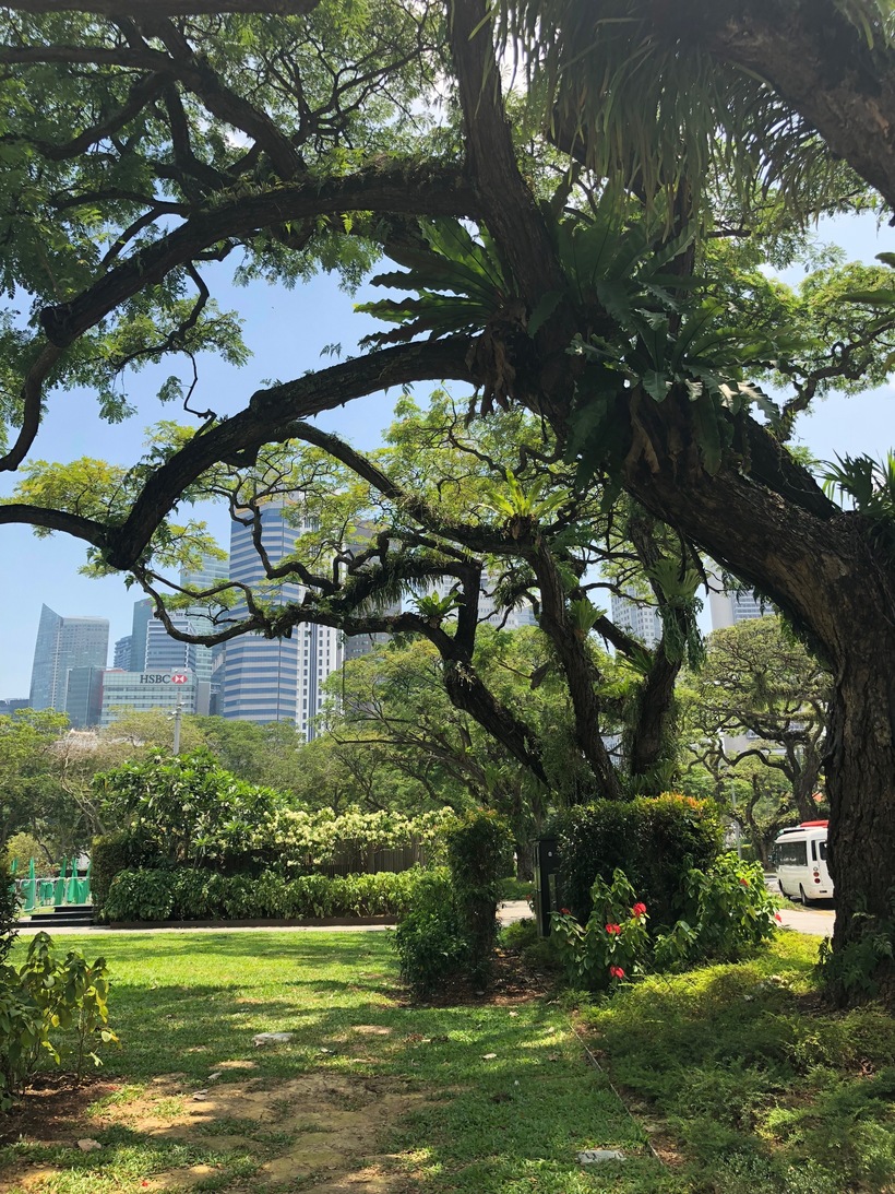 Город поражает не только своей технологичностью, но и обилием растительности. Почти все столбы обвивает плющ, в метро в горшках посажены орхидеи, а деревья растут даже на крышах домов. Остается впечатление, что здесь не множество садов и парков в городе, а наоборот, целый город утопает в саду.