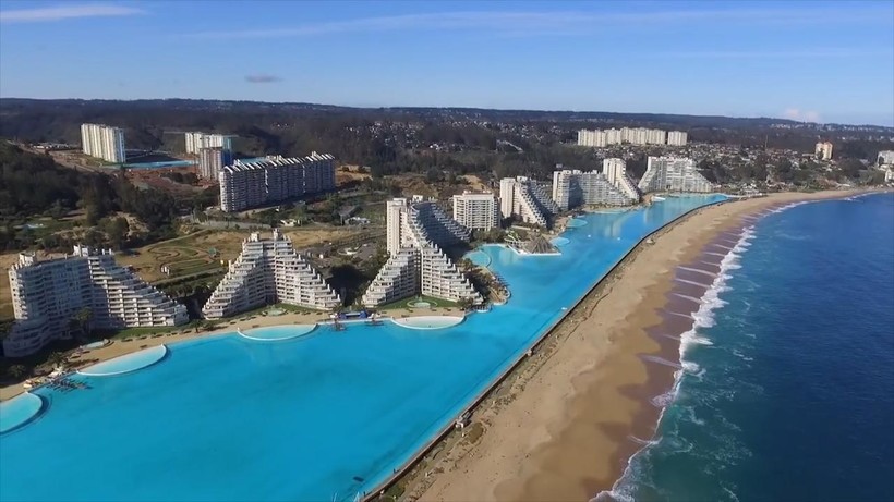 Не смотря на протяженую береговую линию, в Чили особо не покупаешься. Океан не прогревается в достаточной степени даже летом.Но предприимчивые чилийцы нашли чем привлечь туристов любителей пляжного отдыха. Недалеко от Сантьяго был построен самый большой басcейн в Мире. Его протяженность около километра. Даже на парусниках плавать можно.
