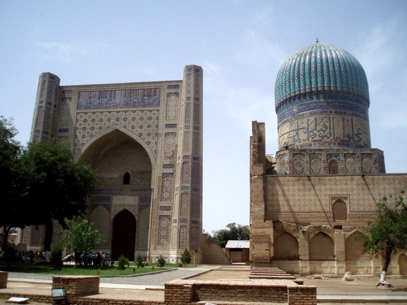 Моей главной мечтой было посетить Самарканд, посмотреть на его известную "голубую" мечеть. Мечеть называется Биби-Ханым, в честь любимой жены правителя Тимура. За отдельную плату можно было подняться на минарет и увидеть мечеть с высоты. Просто дух захватывает, когда смотришь на эту красоту!