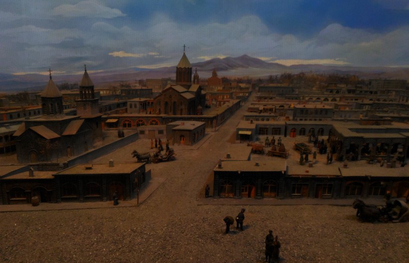 Тут как в истинном центре спрятаны несколько больших черных церковинок, важных как для города, так и для понимания армянского религиозного зодчества, есть стена анекдотов на трех языках, а еще приятный фонтан, пара занятных строений, памятник сильным мира того и много едален. Нас прельстил и насытил ресторан Старая Армения, убранный в лучших традициях — с ткаными коврами, алко вазами квеври, тяжелыми люстрами, лаваш\ом под стеклом дубового стола и грандиозным размахом.