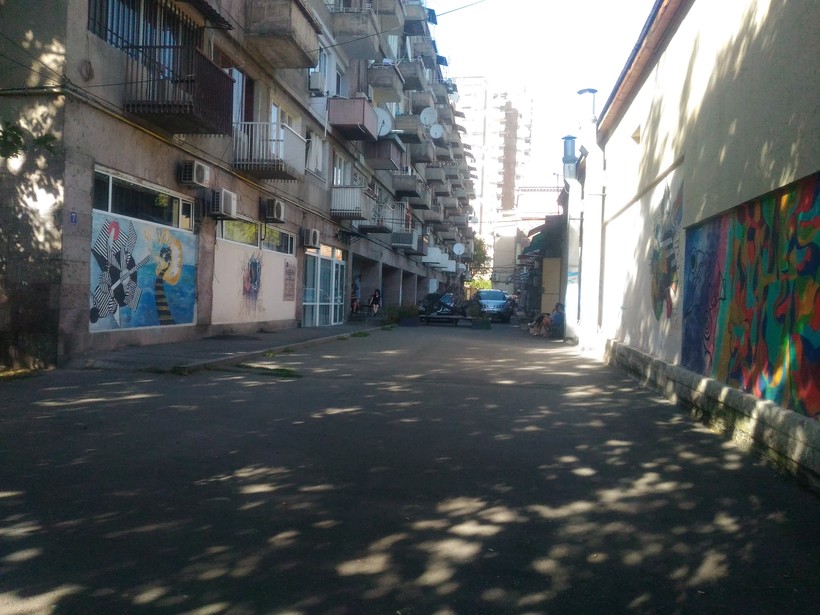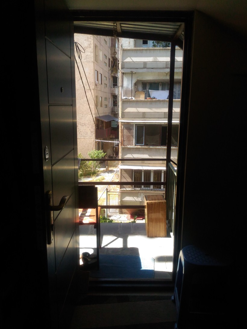 На следующий день безуспешных поисков, мы плюнули и решили снять комнату в отеле\хостеле. Так просмотрев все не\доступные варианты в центре, оказались в Art gesthouse рабочей окраины. Среди шиномонтажек и в нескольких сотнях метров от волшебного постсоветского каньона: в кучакомнатной двухэтажной квартире живет с семьей и доброй собакой один армянский художник.