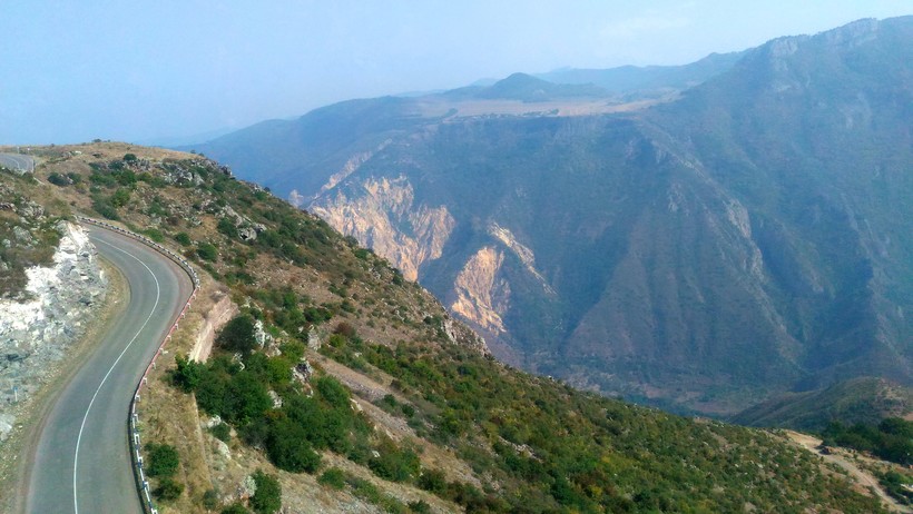 Для перемещения между странами был выбран один из самых интересных путей, а именно на автотранспорте используя крайне бюджетный блабласервис. Машин преодолевающих это расстояние в назначенный день оказалось предостаточно, однако цены зачастую не совпадали с реальными запросами водителей, так что пришлось немного потрудиться с выбором. В итоге нам досталась хорошая машина с адекватным водителем, который не только забрал нас от место проживания, но и рассказывал личные истории о проезжающих красотах, попутно угощая свежесобранным инжиром. Дорога скользящая в горной долине, оказалась настоящим сокровищем, виды невозможных красот открылись нашему взору — горы сначала жесткие и сухие, сменились зеленеющими просторами, переливами свежести. Мы с ветерком проезжали те земли, где так хотели, но не успели оказаться — трепетное зеркало озера Севан и почти Альпийский Дилижан.