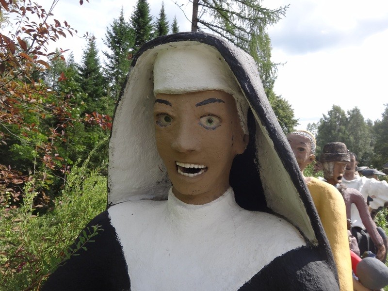 Особенно если прийти сюда ранним утром (а мы так и сделали), то кажется, что все фигуры смотрят на тебя. Скульптор для реалистичности использовал для изготовления «глаз» этих уродцев стекло, и получилось очень круто.