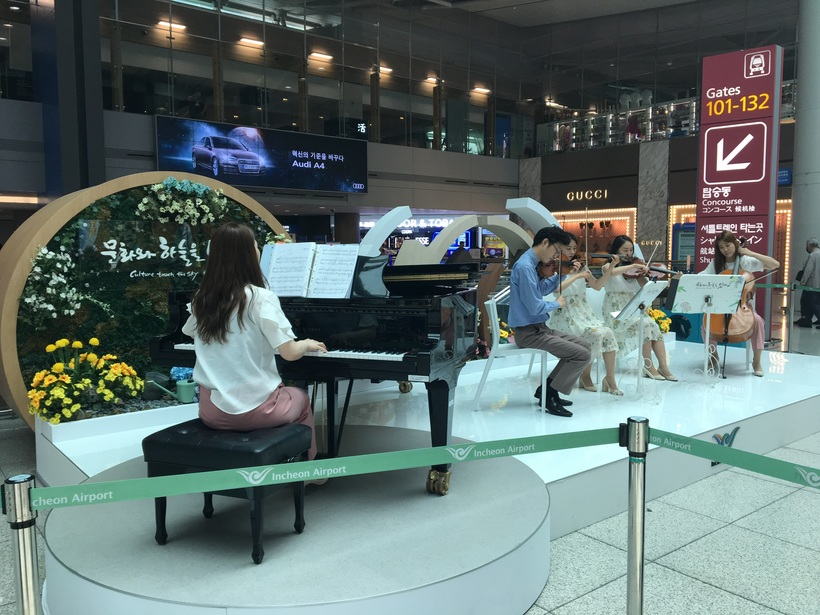 Аэропорт Инчхон не зря признан одним из самых комфортабельных для транзитников или просто ожидающих рейс. Есть возможность посетить бесплатные экскурсии в ближайший Инчхон или даже в Сеул. Но у нас не хватило сил на дополнительные передвижения, поэтому смогли оценить только его инфраструктуру, но оценили по достоинству. Предлагаются развлечения от привычных фудкортов и лаунжзон до фольклорных и классических концертов. Бесплатно, главное, уловить момент