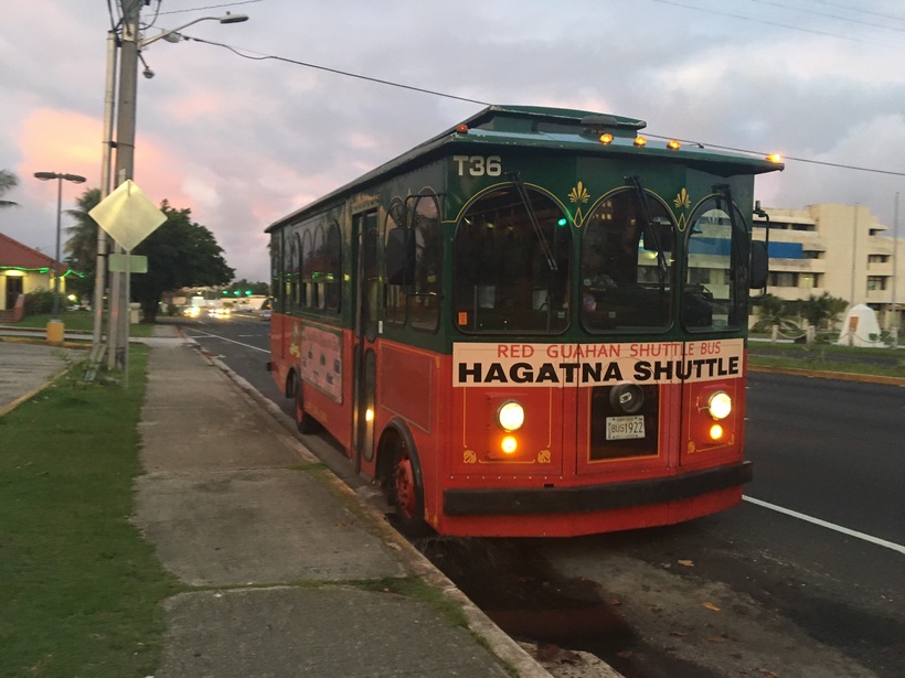 Есть прямое сообщение с Хагатной, утёсом Двух влюблённых и моллами (Micronesia и Outlet). Практически все останавливаются у входа в DFS с обратной стороны улицы. Там же есть информационная стойка и буклеты с расписанием.