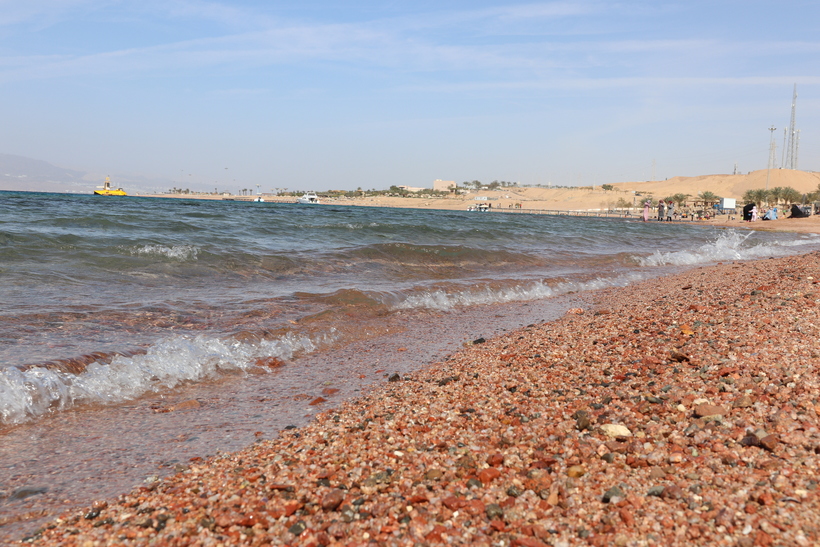 В плане погоды был не совсем сезон (конец января - начало февраля), довольно прохладно, особенно вечерами, хотя считается, что благодаря горам, окружающим город, в Акабе особый микроклимат и температура воды не опускается ниже +20°C, даже зимой! но несмотря на довольно прохладную и ветреную погоду (как мне казалось) поплавать-позагорать нам удалось. Вода в море чистая, очень, берег, правда, не очень (с мусором у них та же беда, что и у нас, его много и не только на берегу).